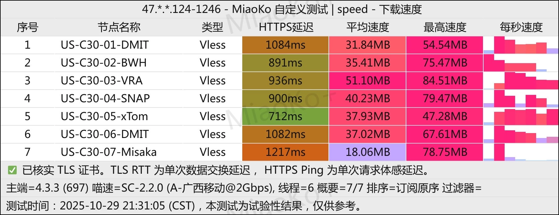 练气C30美国优化这个套餐10块/月起,有7个美国节点,三网速度还可以;