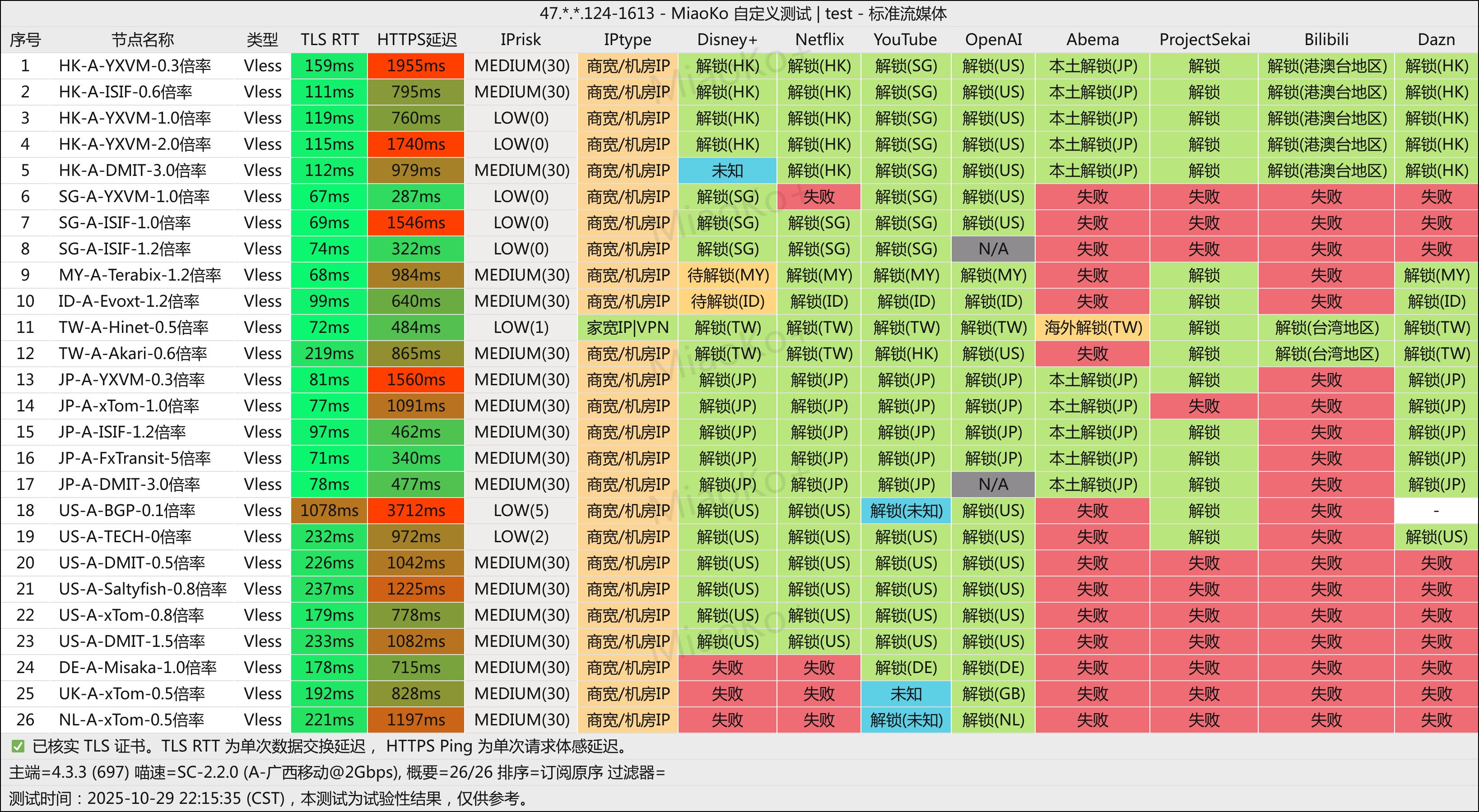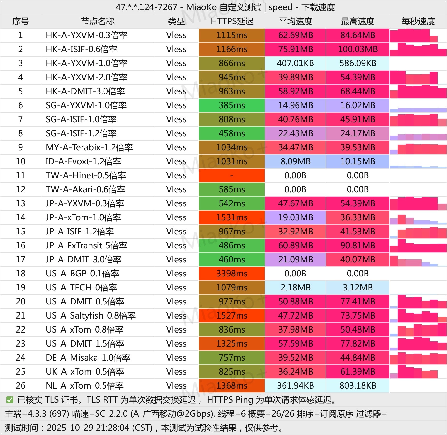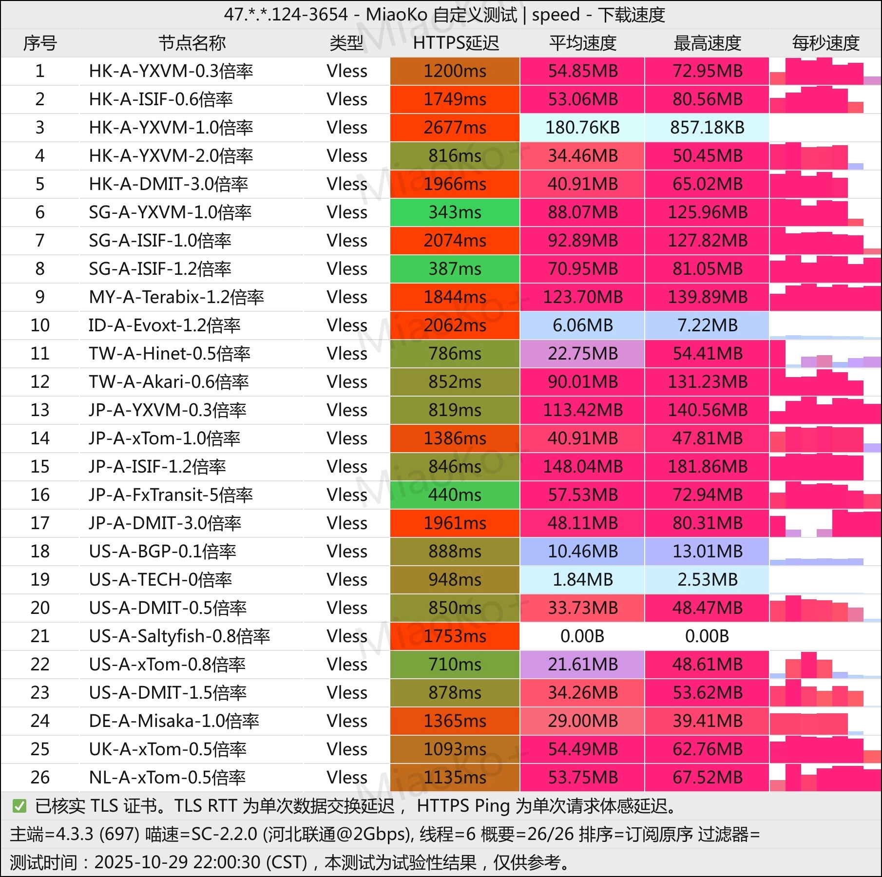Vless reality的协议直连机场,是CTC机场的分站,这家的落地比较高端,有misaka、dmit、xtom、hinet等。晚高峰速度还可以直连每个节点都不同速度参差是正常的,挑运营商且很看晚高峰情况。如果你是电信用户要买直连机场,更加推荐买这家。