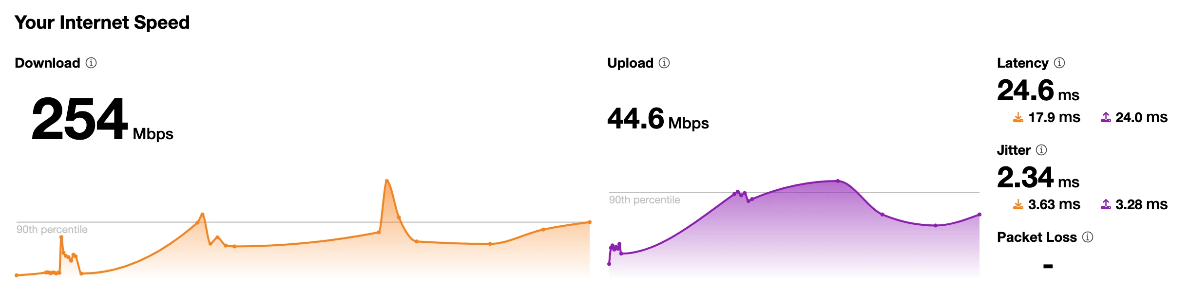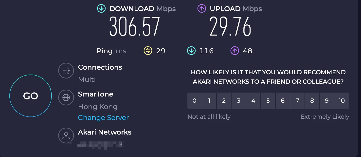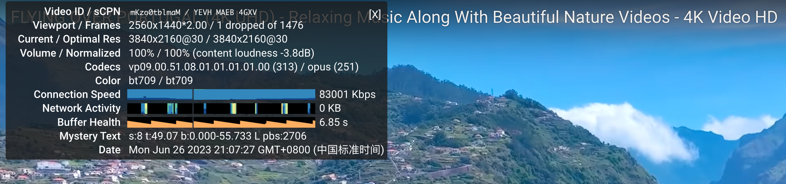 香港节点,晚高峰4K视频播放, connnect speed差不多是最高的时候,不同时间不同设备结果会不一样(设备是m2 mac mini)