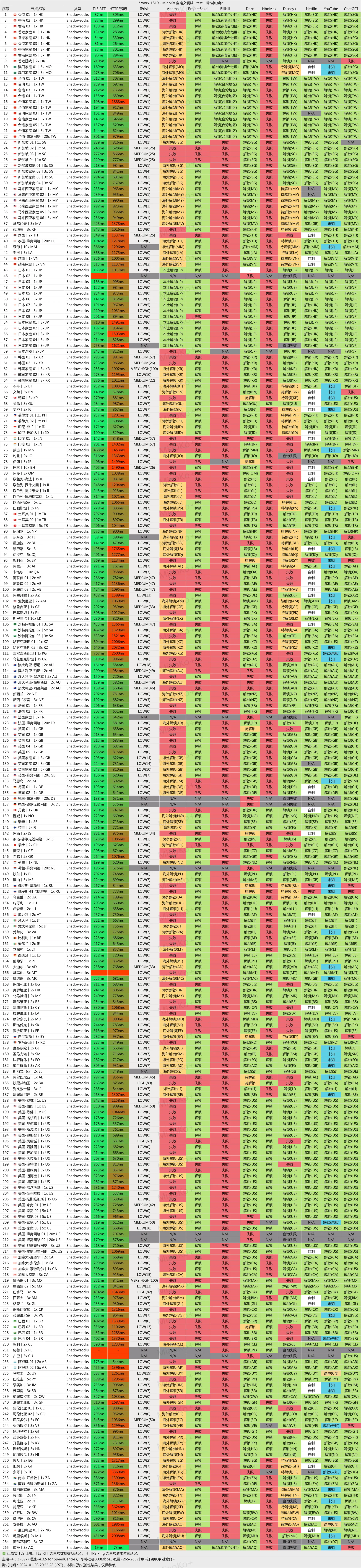 落地:香港有G-Core商宽、HGC商宽、HKT家宽,日本有G-Core、Kirino、Kirin、Catixs、IDCF、Sonet索尼宽带、KDDI、软银家宽等,新加坡Kirino、M1家宽、Whiz家宽。美国10余个落地节点,不同商家,美国AT&T家宽。加拿大BCE家宽,澳门CTM家宽,马来西亚有TM家宽、Maxis商宽,新西兰Vodafone家宽。节点后端负载均衡,精简了一点。