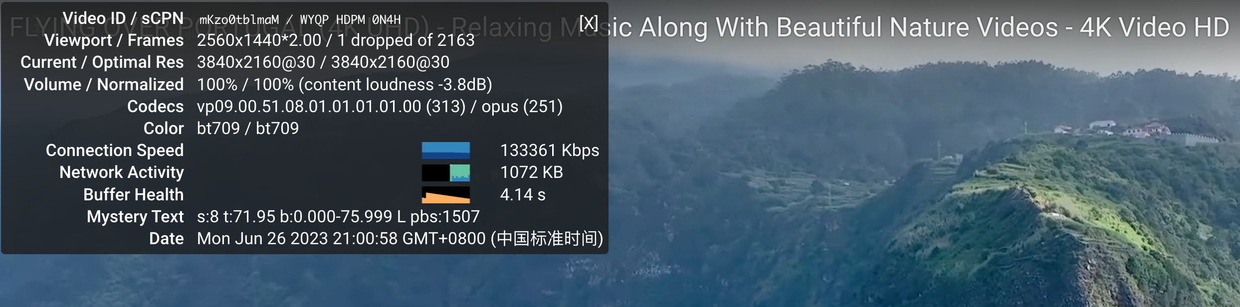 香港节点,晚高峰4K视频播放, connnect speed差不多是最高的时候,不同时间不同设备结果会不一样(设备是m2 mac mini)