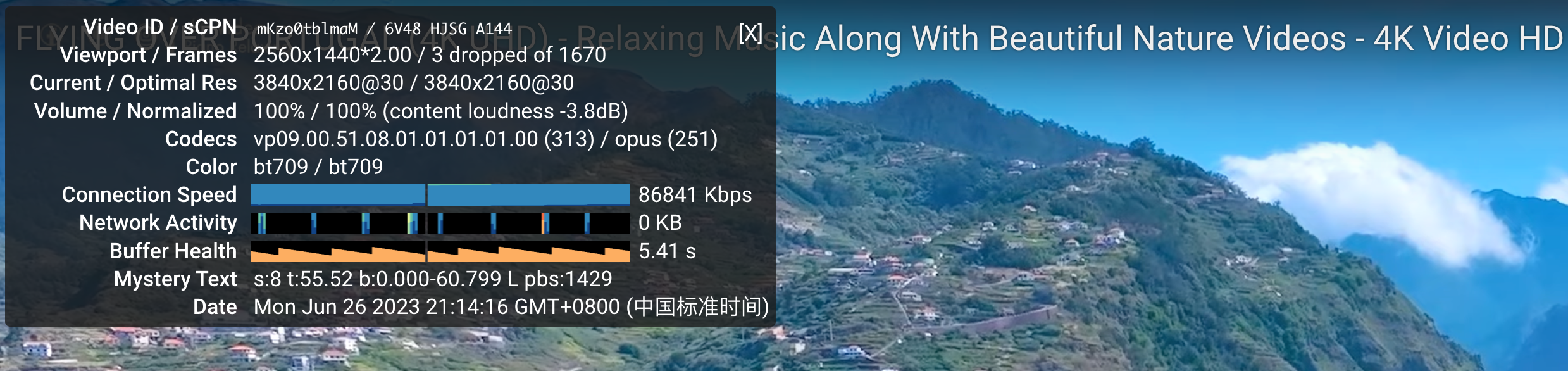 香港节点,晚高峰4K视频播放, connnect speed差不多是最高的时候,不同时间不同设备结果会不一样(设备是m2 mac mini)