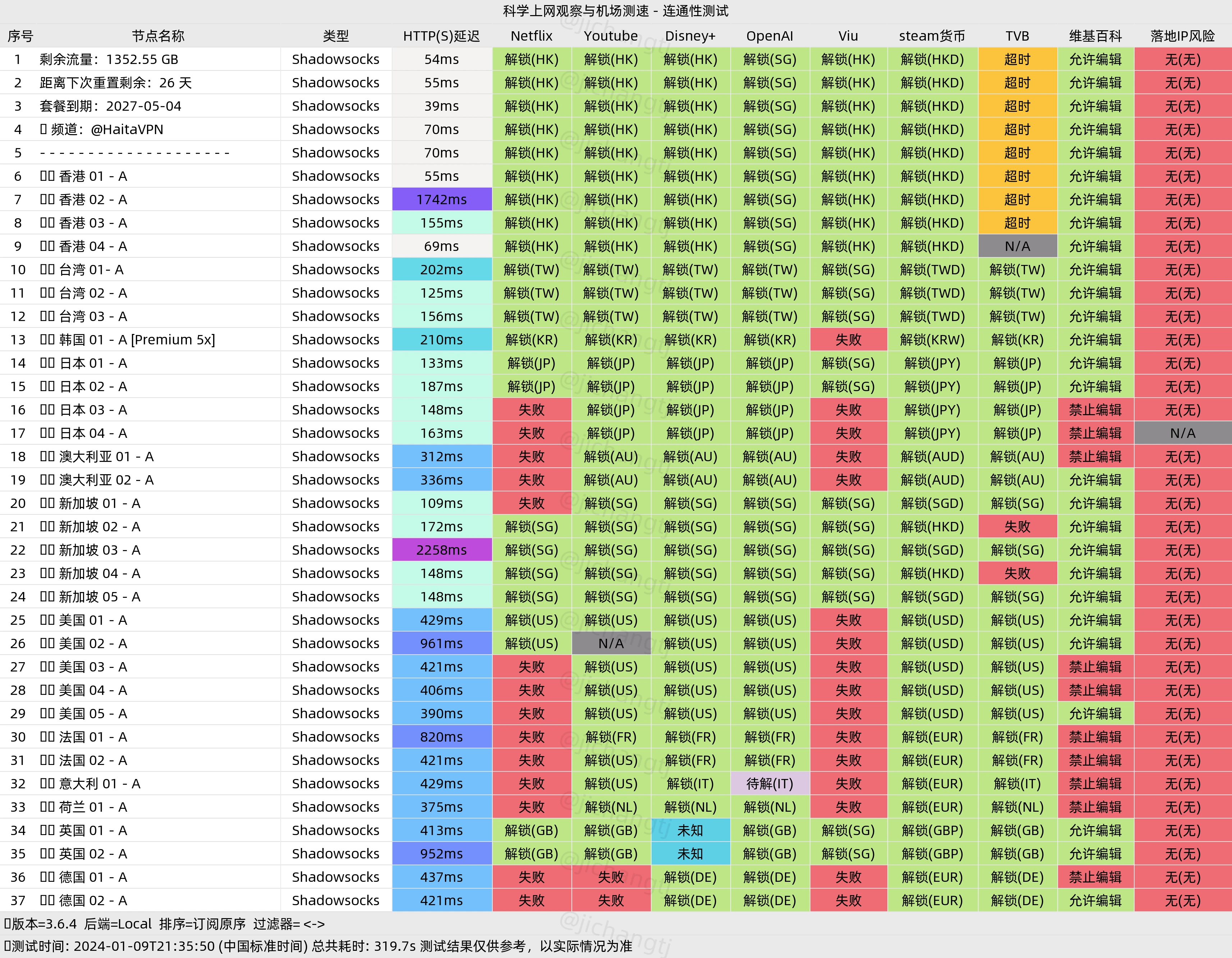 节点国家与地区:香港、日本、新加坡、美国、台湾、澳洲、德国、法国、英国
