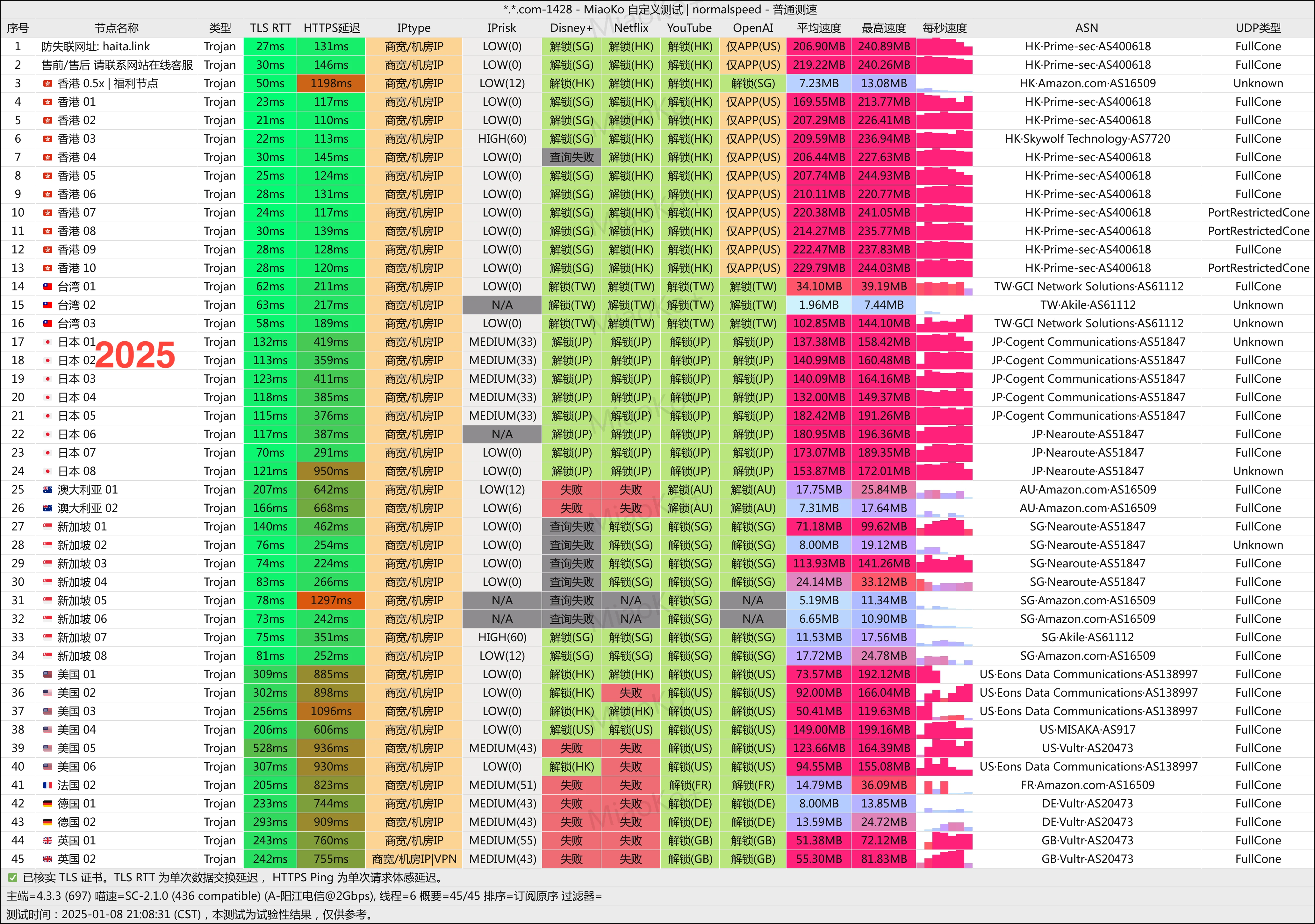 便宜中转Trojan机场。这家主要是带宽充足。目前入口有三个,可避免同时全挂:广东(香港、新加坡、台湾)和上海(日本、美国)。