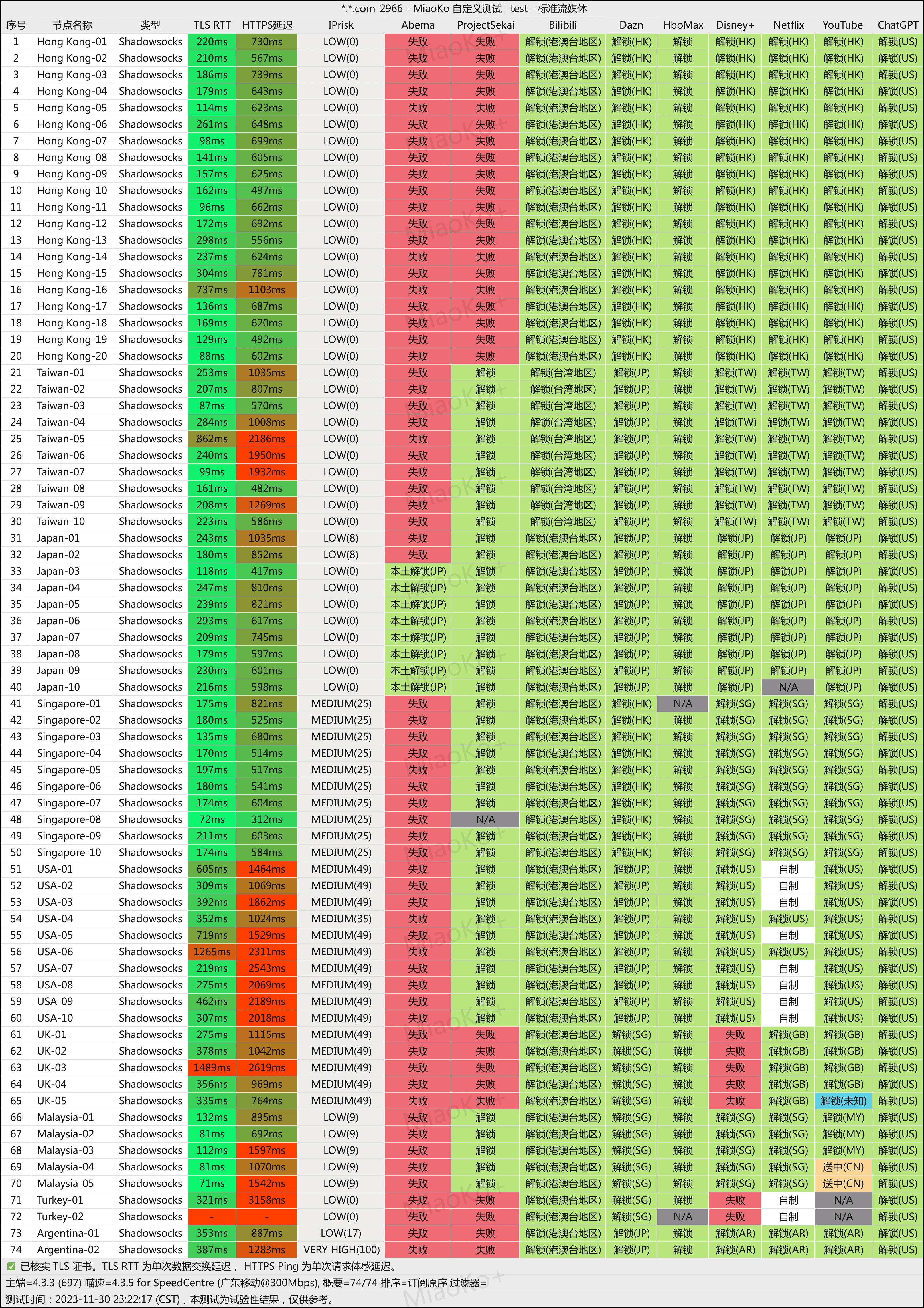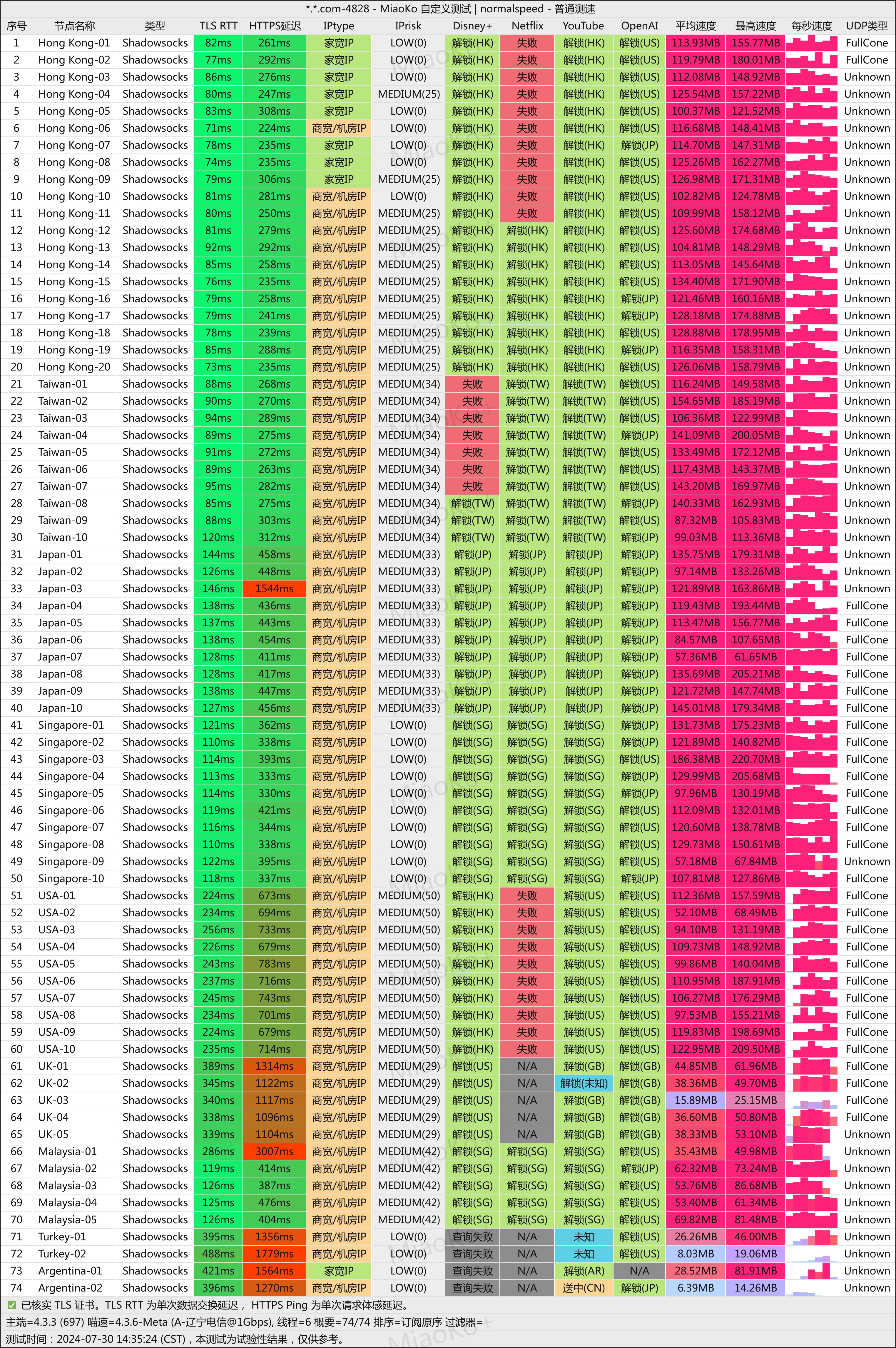 节点是正常的,部分节点测速没测出来